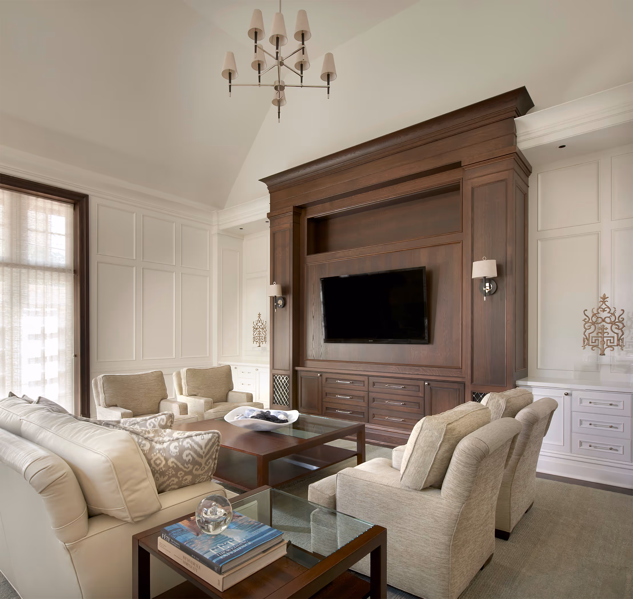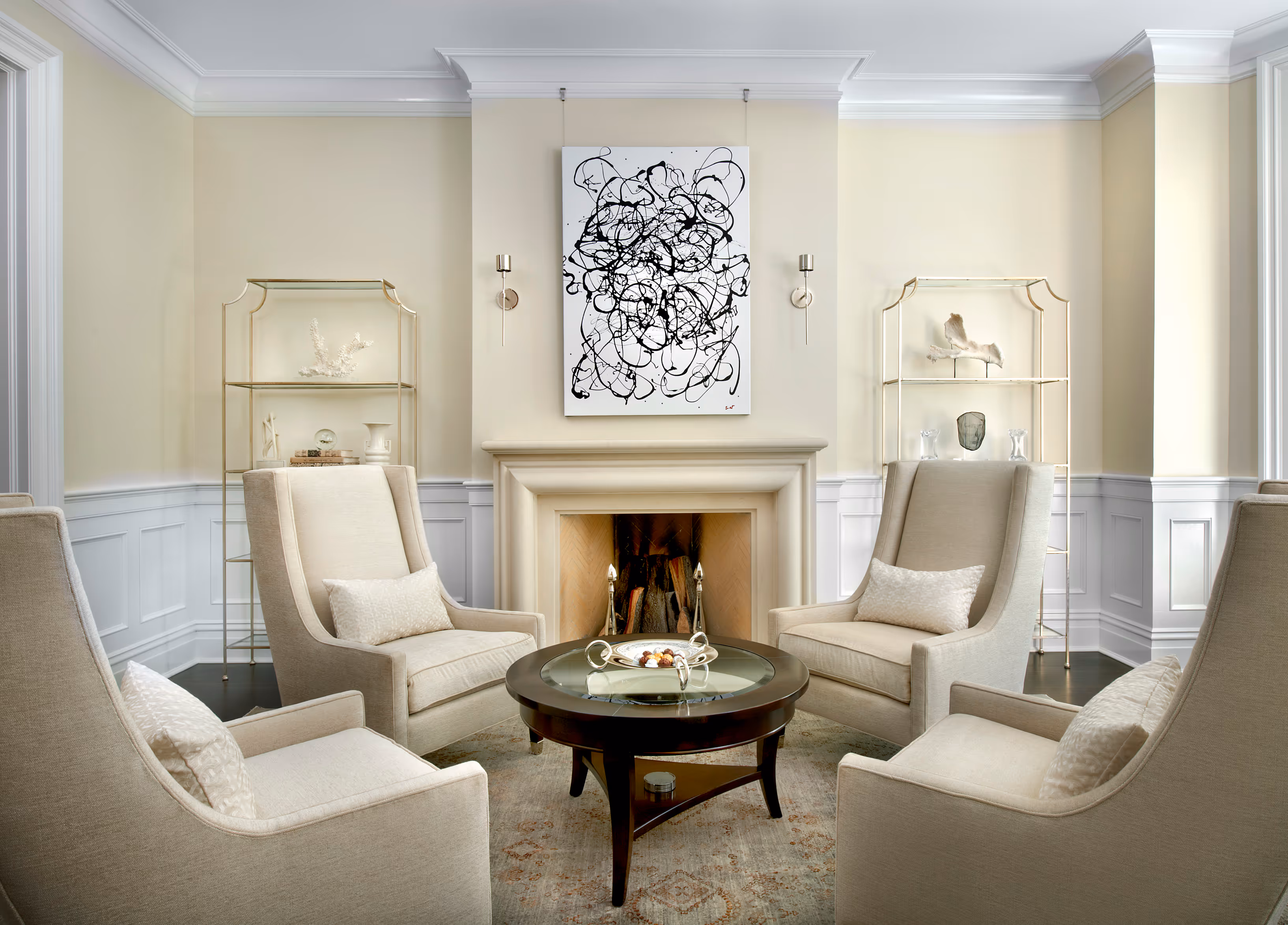 Warm, transitional tones were layered throughout the home to create a refined yet inviting backdrop—one that beautifully showcases the client’s modern art and carefully curated collection of decor and accessories.