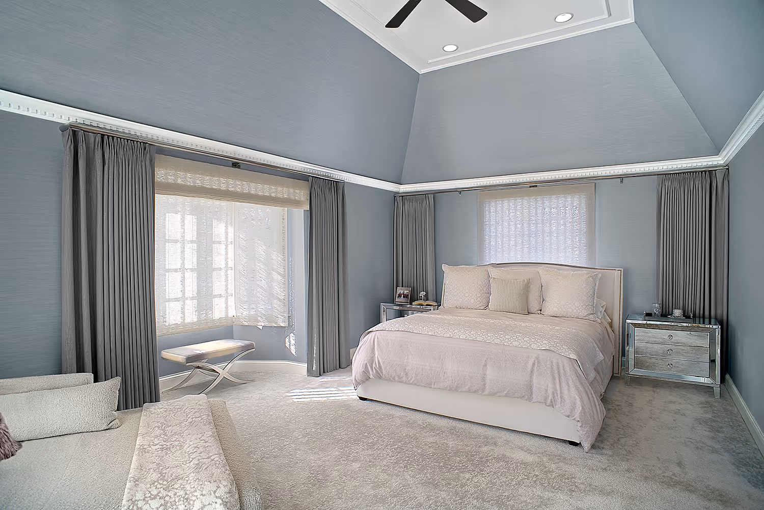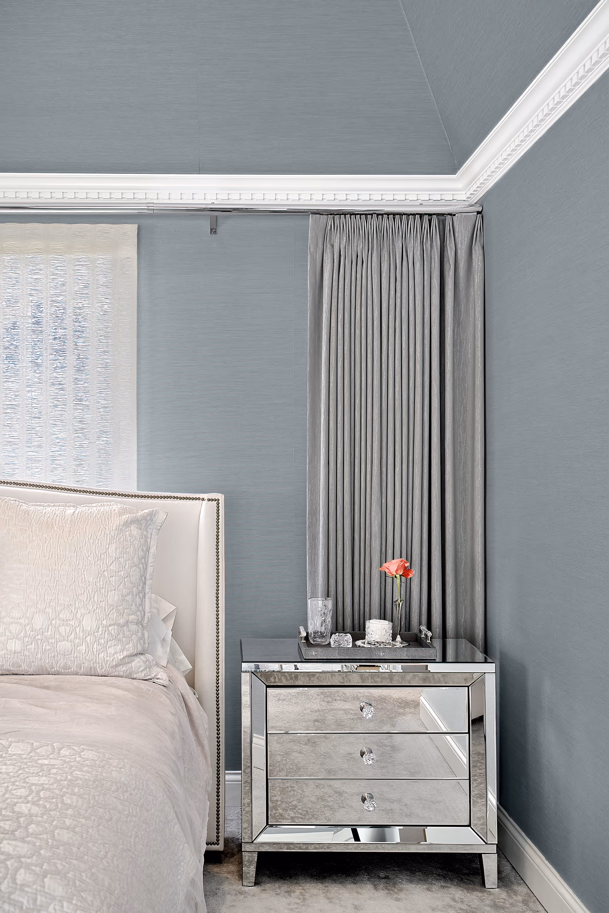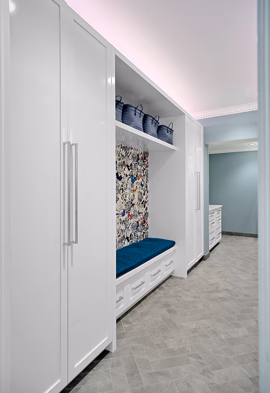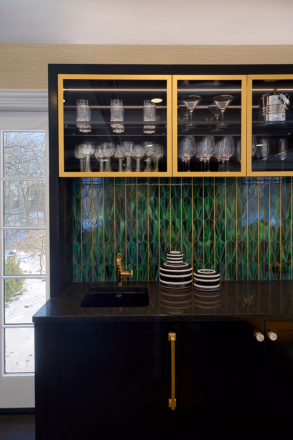 Each space was designed to surprise and delight—from sleek, high-gloss French lacquer cabinetry to ethereal floating glass sculptures, from hand-applied rose gold accents to walls finished in luminous white gold. Rich wallcoverings, restored vintage hardware, and one-of-a-kind artisanal touches brought texture, depth, elegance and distinction to life.