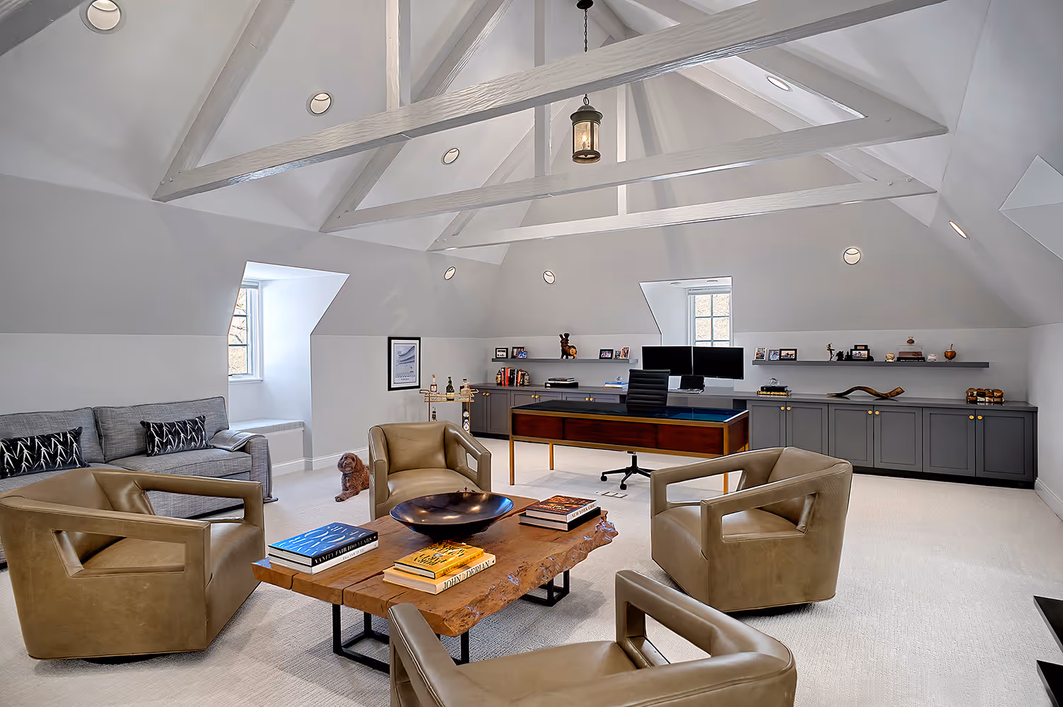 Breathtakingly unique custom furnishings were crafted to complement the home’s scale and character, each bespoke piece designed to reflect the family’s refined yet cutting edge sensibility.