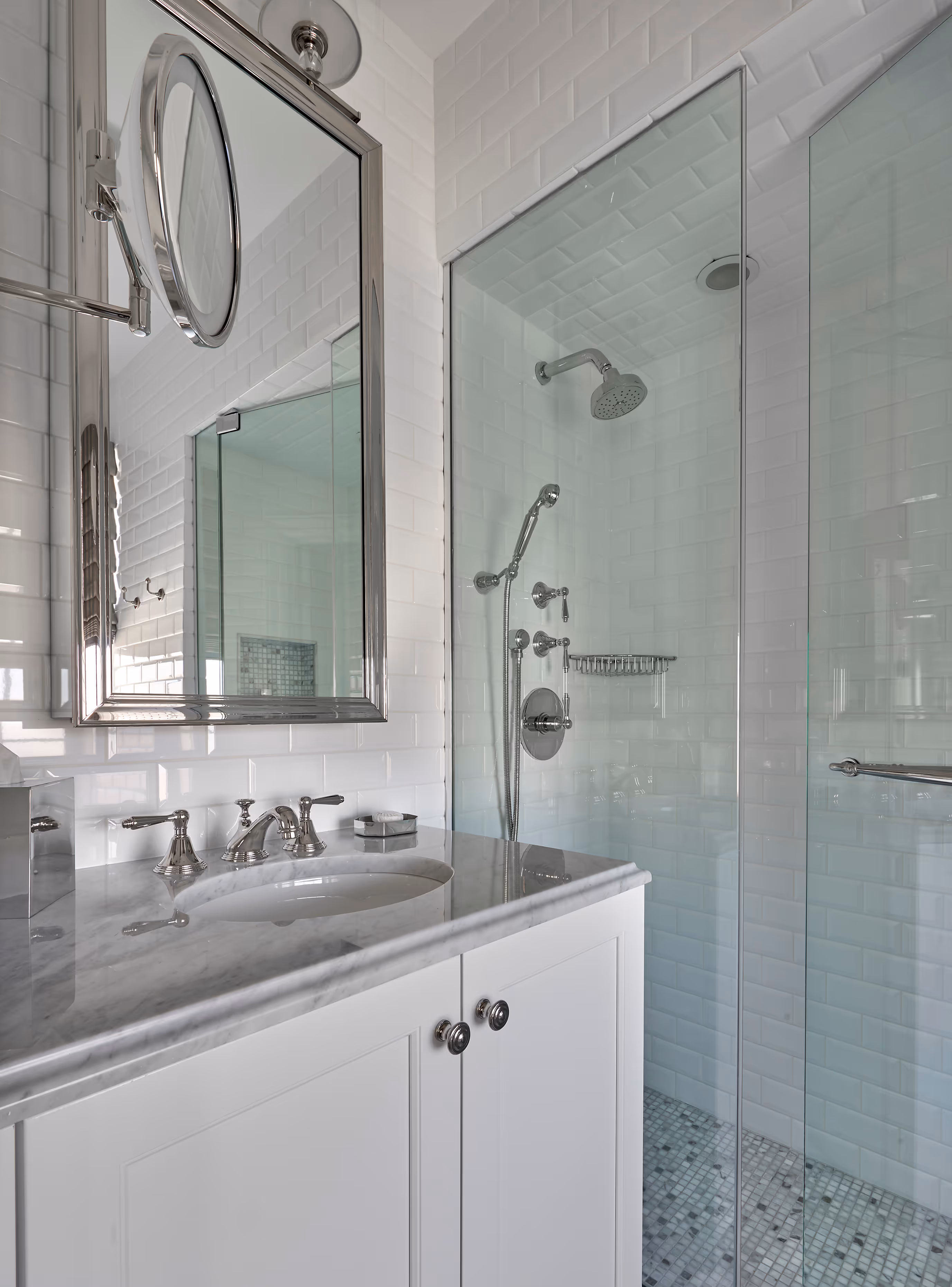 Though traditional at its core, the residence was reimagined through a softer, lighter lens. Jacobean-ebony–stained walnut floors flow throughout, grounding a brighter palette where modern lines are thoughtfully balanced with classic detailing and rich materiality.