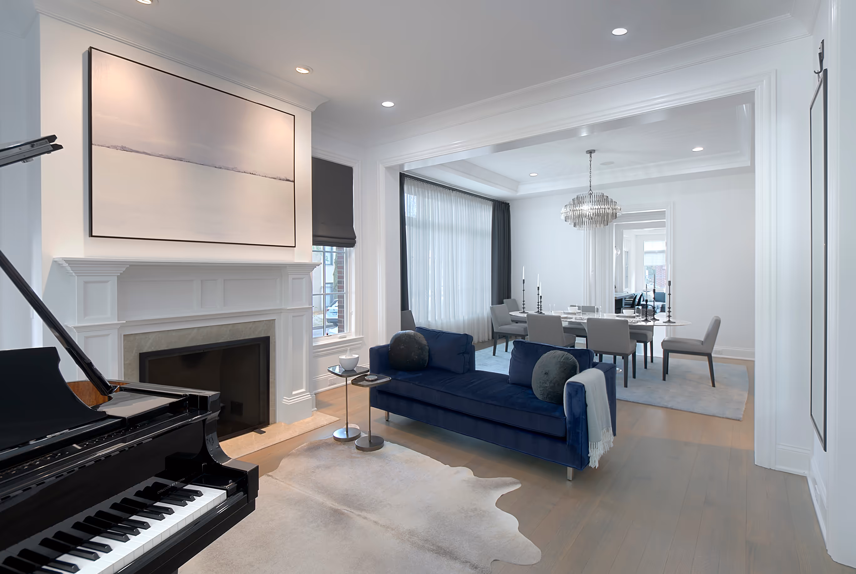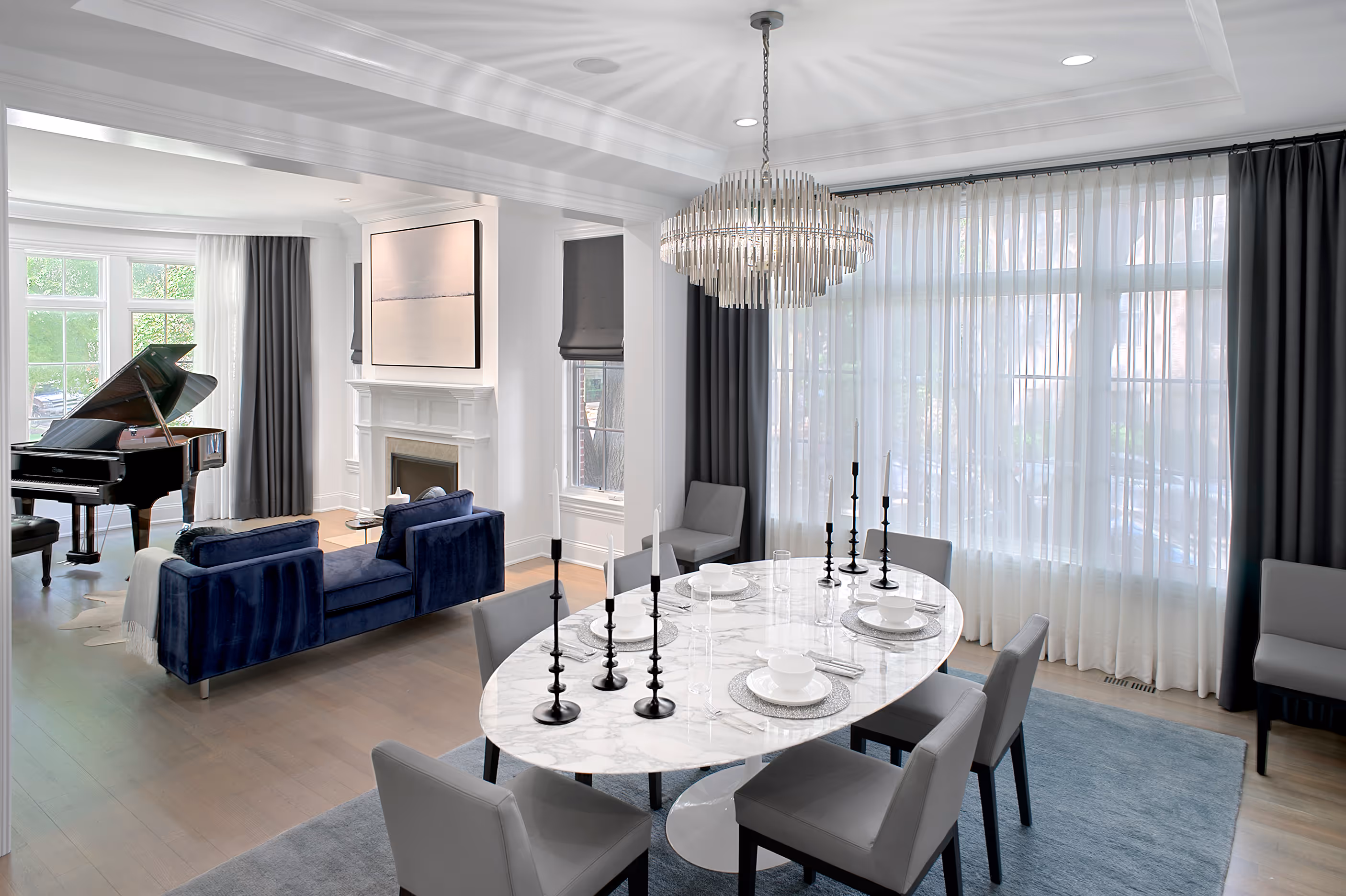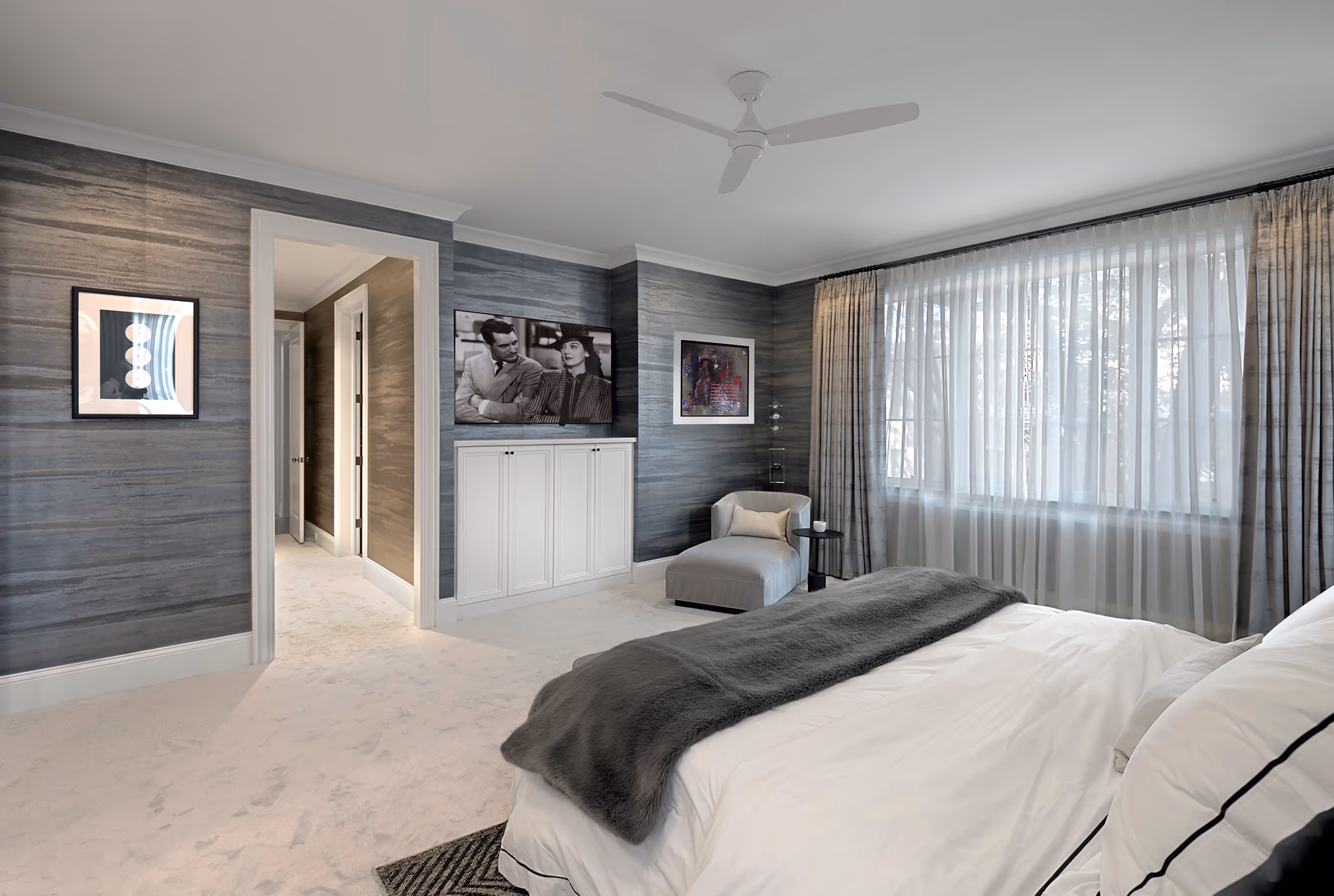 The project entailed a comprehensive renovation of their Lincoln Park residence- a magical transformation. From the floors, which were carefully sanded and stained, to the freshly painted and thoughtfully furnished rooms. The kitchen, family room, primary suite, and primary bath were all reimagined with a sleek, modern and elegant sensibility incorporating a moody palette of smoky grays and cool blues to set the tone. And then, the kitchen’s high-gloss Italian lacquered cabinetry adds a layer of luxurious opulence to the home’s modern feel.