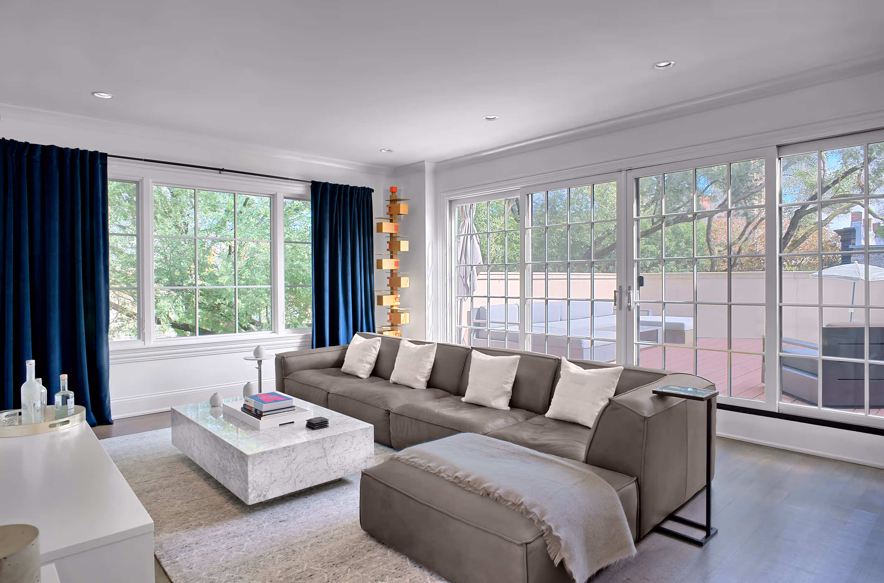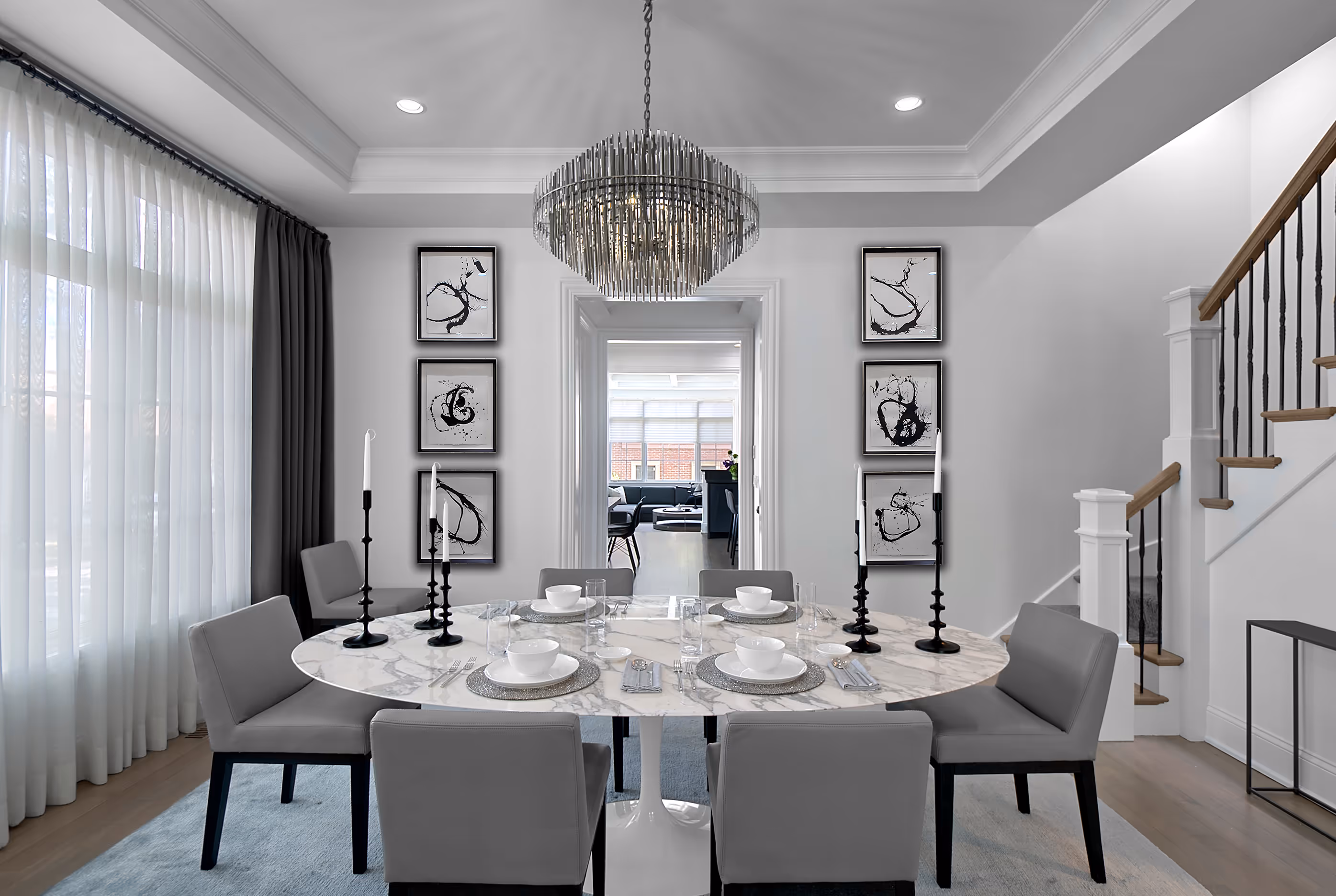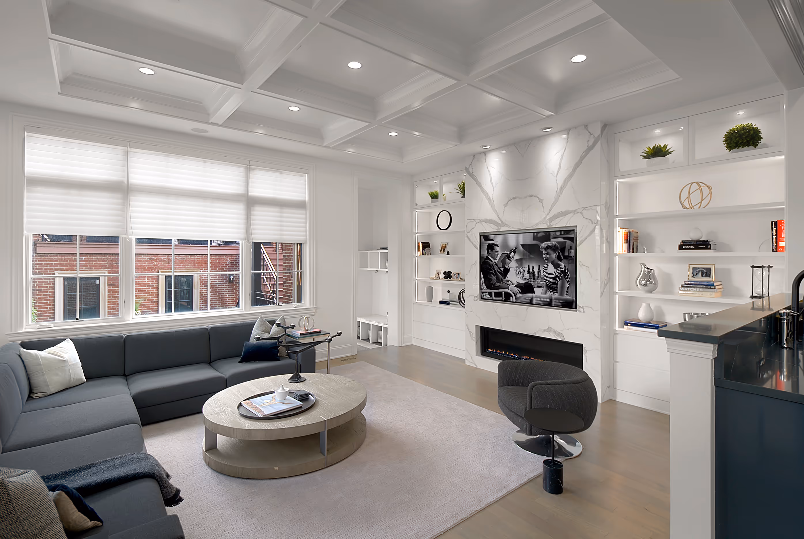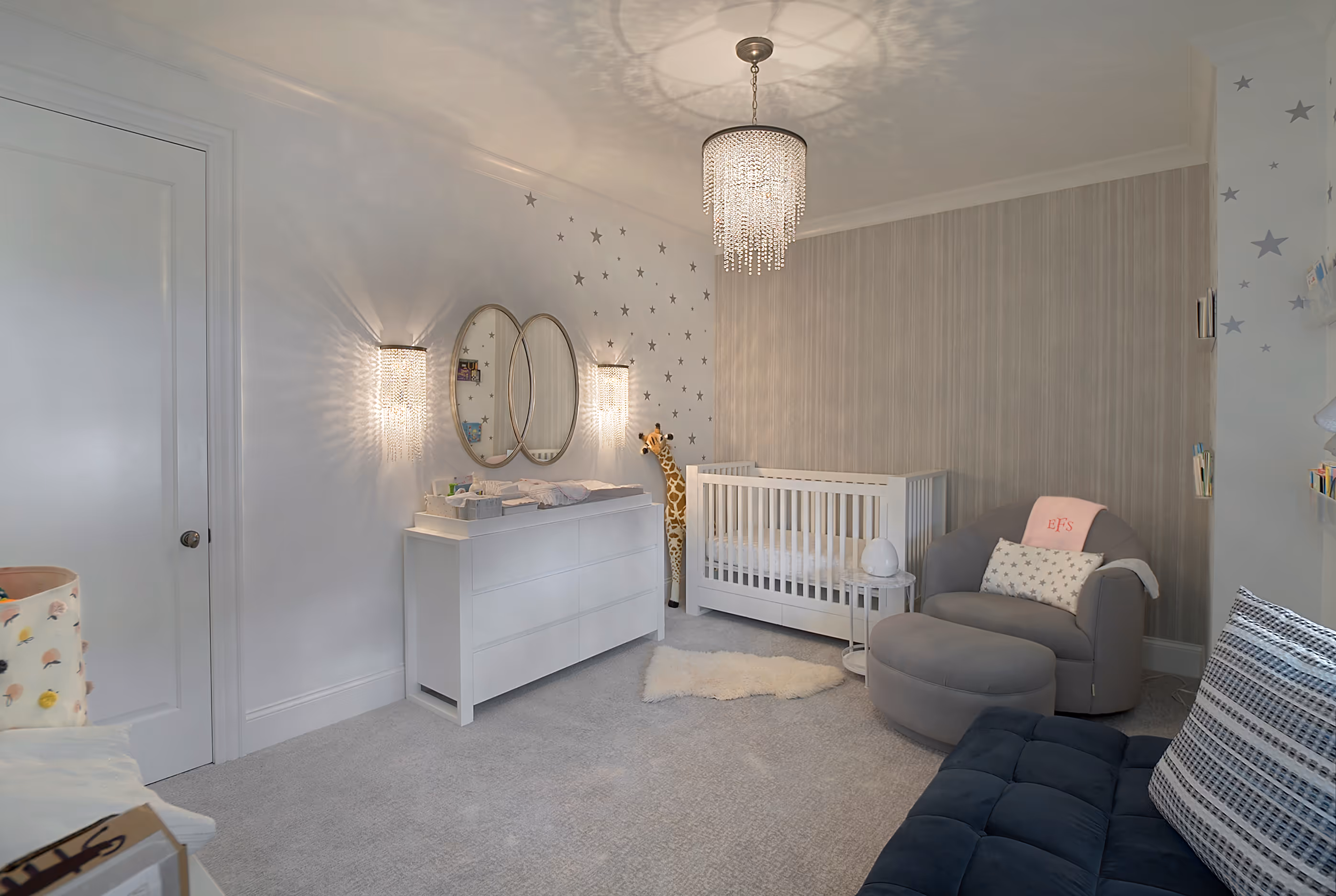 The project entailed a comprehensive renovation of their Lincoln Park residence- a magical transformation. From the floors, which were carefully sanded and stained, to the freshly painted and thoughtfully furnished rooms. The kitchen, family room, primary suite, and primary bath were all reimagined with a sleek, modern and elegant sensibility incorporating a moody palette of smoky grays and cool blues to set the tone. And then, the kitchen’s high-gloss Italian lacquered cabinetry adds a layer of luxurious opulence to the home’s modern feel.