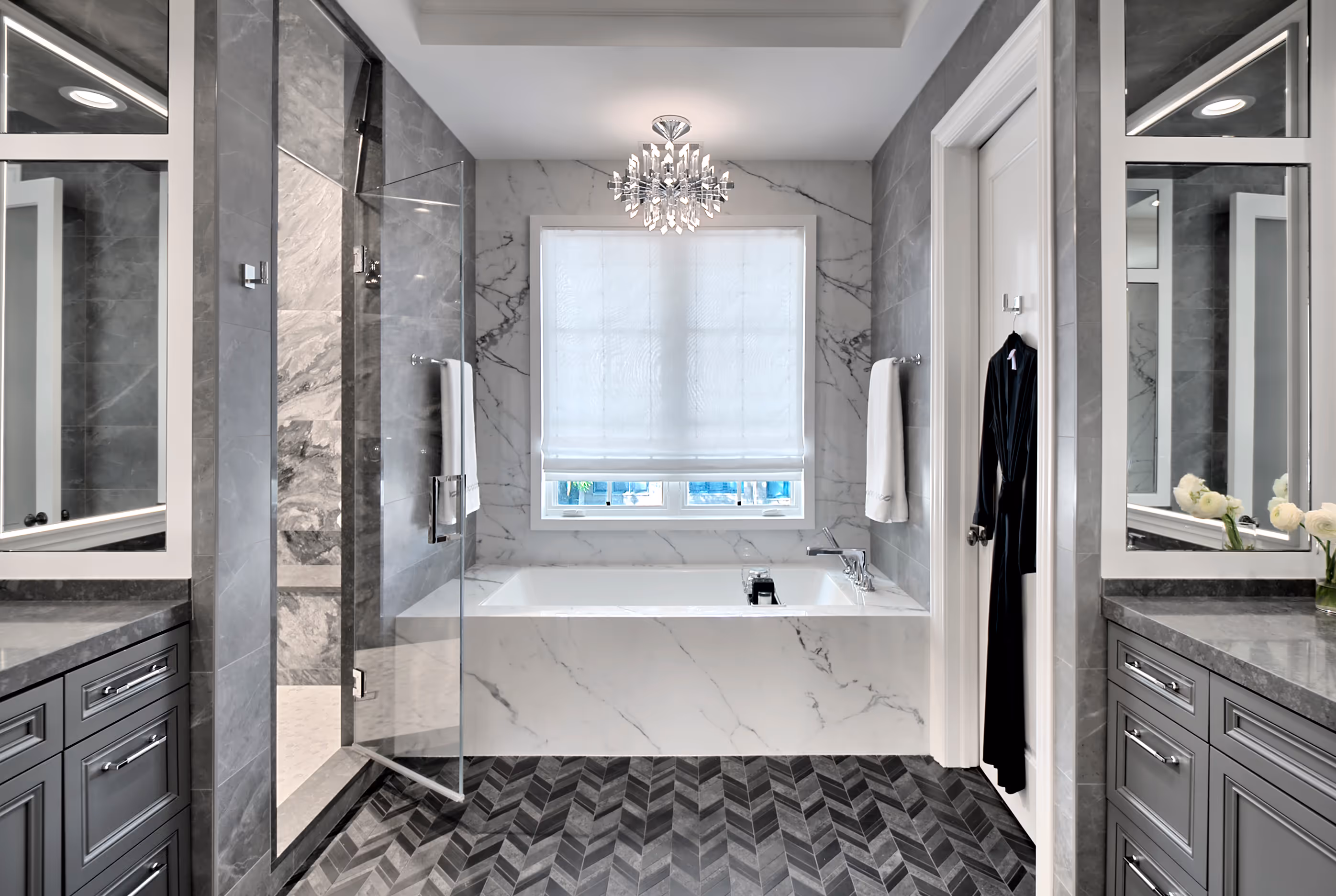 Throughout, a curated mix of materials creates a rich visual and tactile contrast. Natural marble and hand-selected stone surfaces introduce both texture and warmth, grounding the modern and elegant aesthetic.